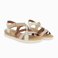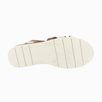 Sandalia de cuña de mujer fabricada en piel con tiras cruzadas en distintas tonalidades. Cuenta con forro y plantilla de piel, cierre de velcro y suela combinada.