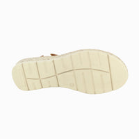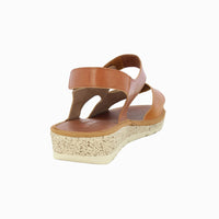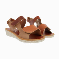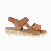 Women's leather wedge sandal in a combination of browns. It offers an optimal fit to the foot with three velcros, leather insole and light and flexible rubber sole.