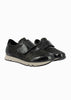 Zapato tipo deportivo para mujer fabricado en combinación de licra estampada con pieles lisas y grabadas en color negro. Cuenta con cierre de velcro, elástico en empeine, plantilla extraíble y suela ligera dentada.
