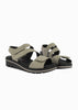 Sandalia de cuña para mujer fabricada en piel lisa en color taupe. Ofrece cierre con triple velcro para un ajuste óptimo al pie, plantilla de microfibra extraíble de alta densidad y suela de poliuretano.